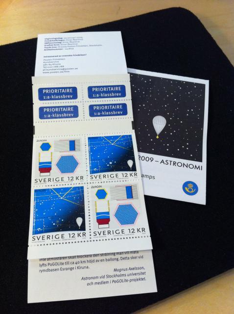 Den är baserad på de frimärken som togs fram av Posten i samband med astronomiåret 2009. Så den har flera likheter med frimärkena, bland annat de gula strecken och pricken =)