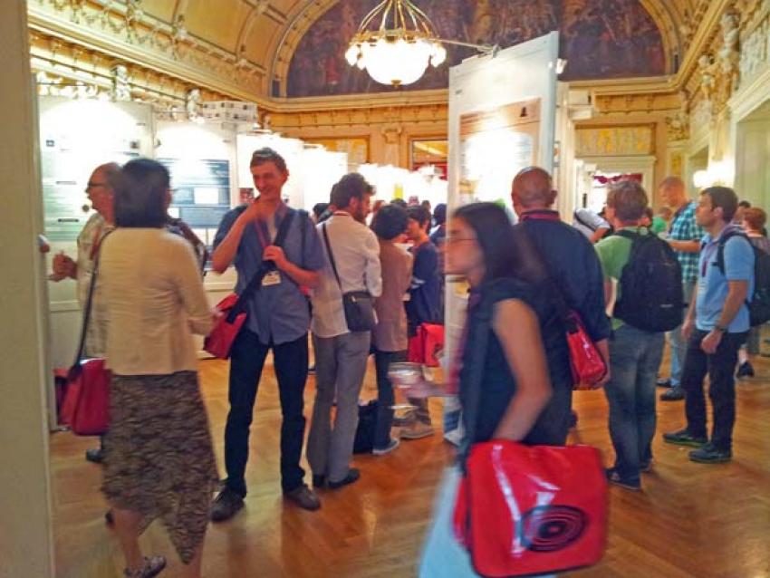 Jag har precis deltagit i den första omgången postervisning. Totalt kommer ca 650 postrar att visas! När det är så många kan man inte bara starta från början och gå igenom alla. Istället markerade jag de för mig mest intressanta postrarna i programmet och dessa letade jag reda på först. Sen gick jag igenom så många jag orkade av de resterande postrarna. Men man hinner inte ta många steg innan man träffar någon kollega som man stannar och pratar med så det tar sin tid. Jag avundas verkligen inte de personer som har fått uppgiften att titta på alla (!) postrarna för att utse två vinnare vars författare ska få ge ett kort föredrag om sin forskning.
