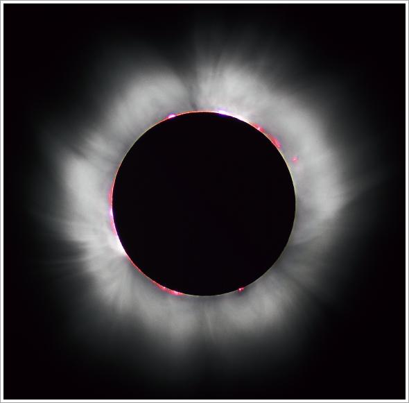 Bild: Så här såg en total solförmörkelse ut som skedde 1999 över Frankrike. Källa: Wikipedia, Luc Viatour.