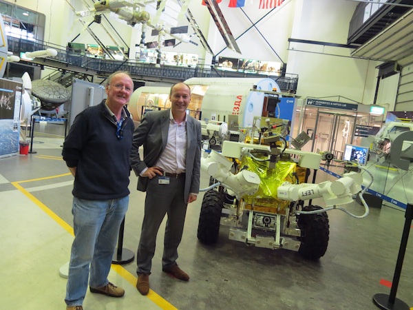 Bild: Systemingenjören William Carey (till vänster) och Philippe Schoonejans (till höger) som båda jobbar med robotik på Estec.