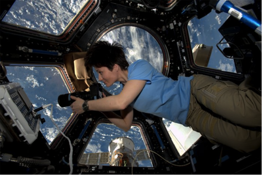 Bild: Samanta Cristoforetti tar foton från rymdstationens fönsterdel Cupolan.
