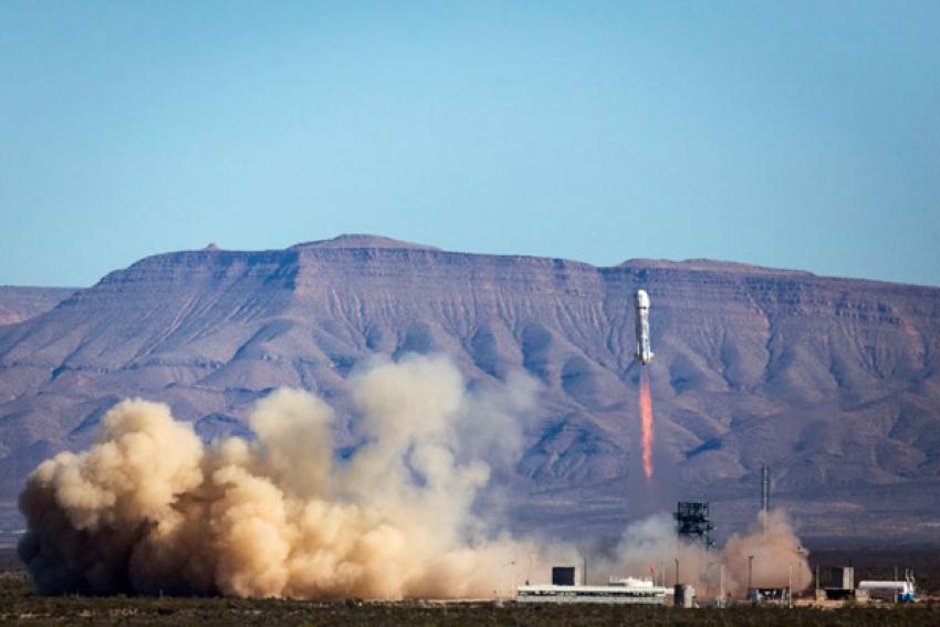 Bild: Blue Origins raket New Shepard lyfte från företagets raketbas i Texas.