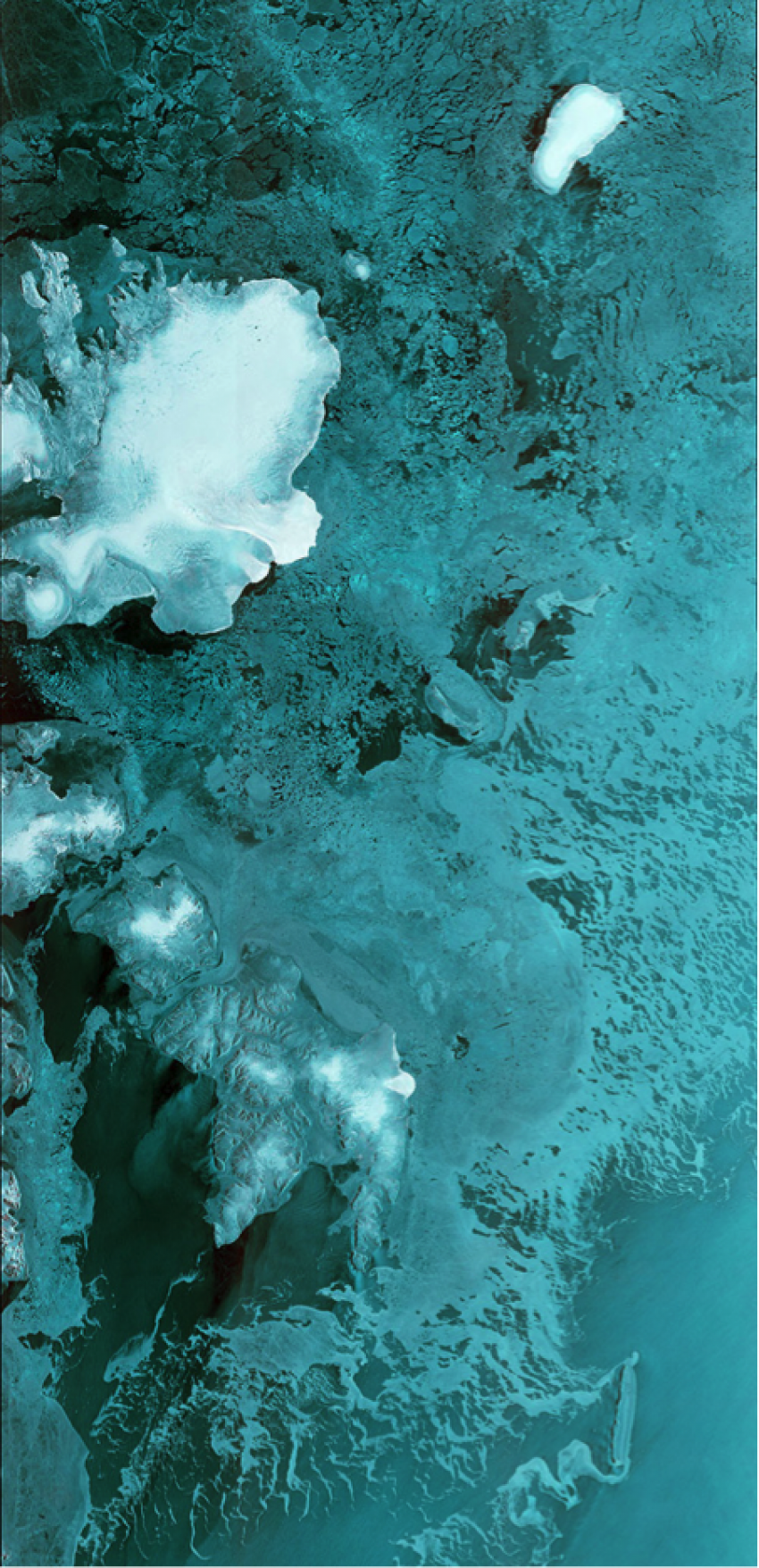 Den allra första bilden täcker ett område på 250 km. Den visar Svalbard i Norra ishavet, med glaciären Austfonna tydligt synlig som ett vitt område uppe till vänster i bild.