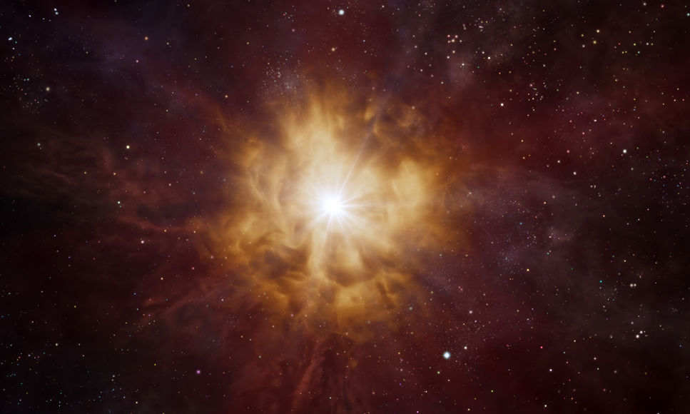 Till slut tar dock bränslet slut inuti kärnan och stjärnan börjar sakta svalna. Nu är det illa. Trycket sjunker i takt med avsvalningen och gravitationen blir då större än det inre trycket vilket gör att stjärnan plötsligt kollapsar. Kollapsen sker så snabbt att det skapas enorma chockvågor som får stjärnans yttre del att explodera i vad vi kallar en supernova. Explosionens omfattning är svår att föreställa sig men tänk att något en miljon gånger större än jordens massa kollapsar på 15 sekunder. Det är en rejäl smäll. Solen har för liten massa för att explodera på det här sättet, den kommer istället svälla till en röd jätte innan den krymper ihop till en vit dvärg.